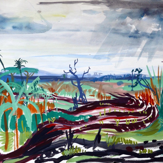 Madagaskar 1986, Sonnenuntergang auf Nosy Be, Aquarell