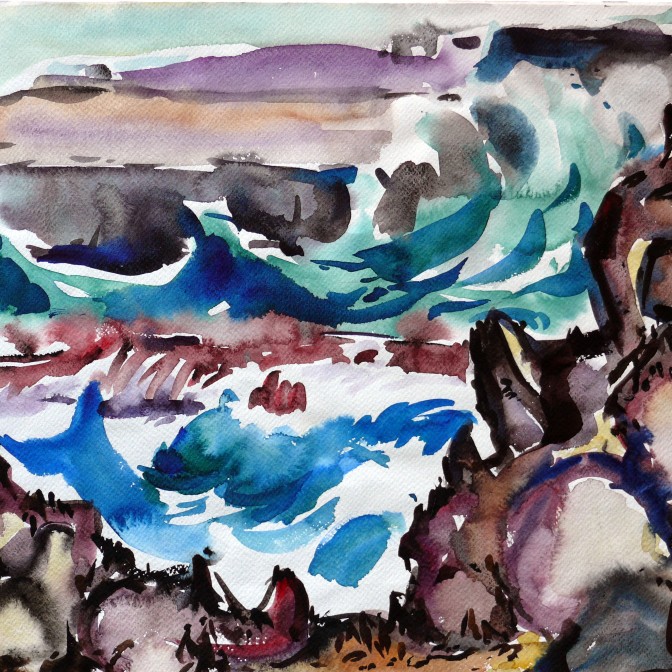Bosnien-Herzegowina, Gouache, Reisebilder, Werke Herzegowina 1969, Ein Sonntag in der Herzegowina, Gouache